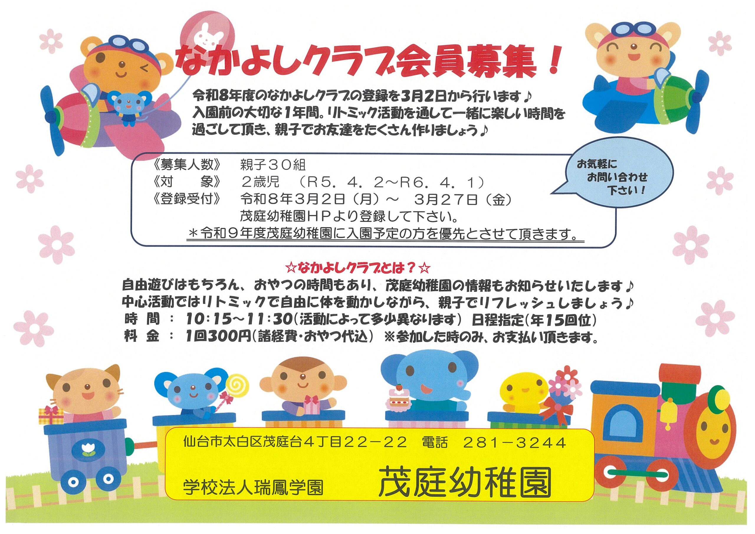 *令和8年度に茂庭幼稚園に入園予定の方を優先させていただきます。
